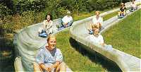 Der Power Slide ist eine Sommerrodelbahn, wie man sie in bergigen Urlaubsgebieten öfters auch mal so (ohne Park) findet. 170 Meter Höhenunterschied auf einer Länge von 780 Meter. Das heißt 22% Gefälle!